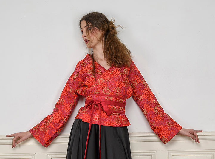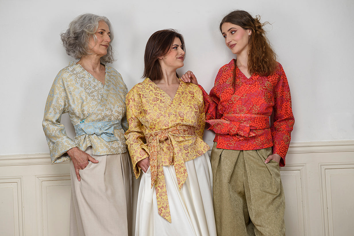 Entre tradition et modernité, notre maison de couture revisite artisanalement le kimono femme, le kimono homme, pièce iconique du Japon, dans une coupe nouvelle, innovante et REVERSIBLE.