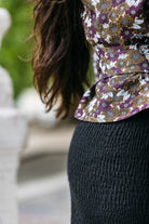 Coupée dans un textile jacquard stretch indéformable, avec un beau motif imitation écorce d'arbre, de couleur noir ton sur ton .