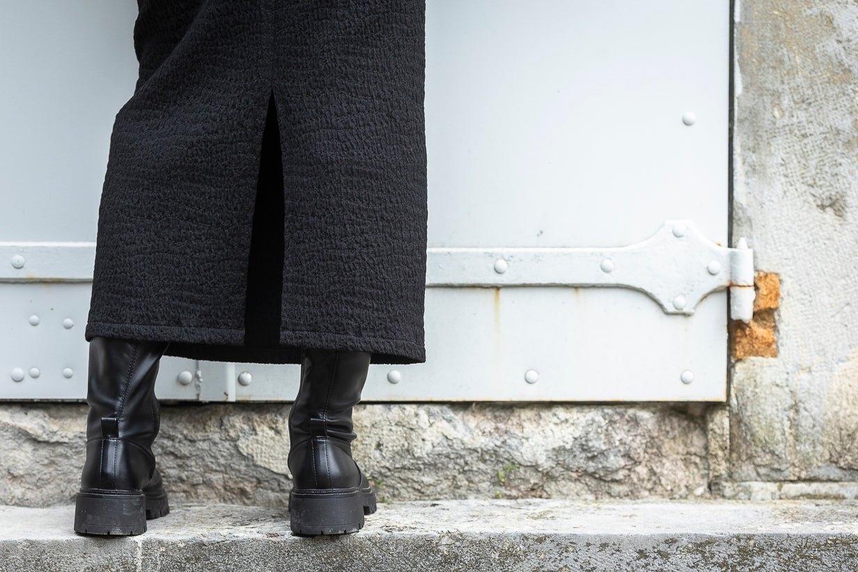 La jupe tube SUKATO est longue, stretch et ultra confortable pour se mouvoir et jouer avec les superpositions.