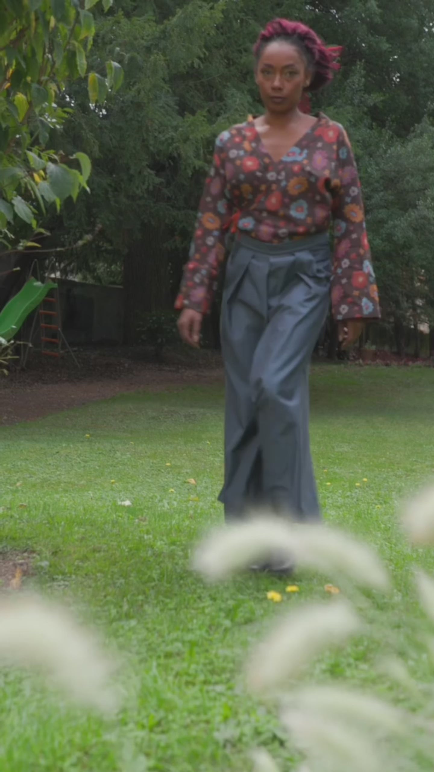 Ce pantalon hakama large, monté sur une ceinture avec fermeture éclair sur le côté, possède de grandes poches cavalières. Les nombreux plis devant et dans le dos, ajoutent beaucoup de fluidité à chaque pas.