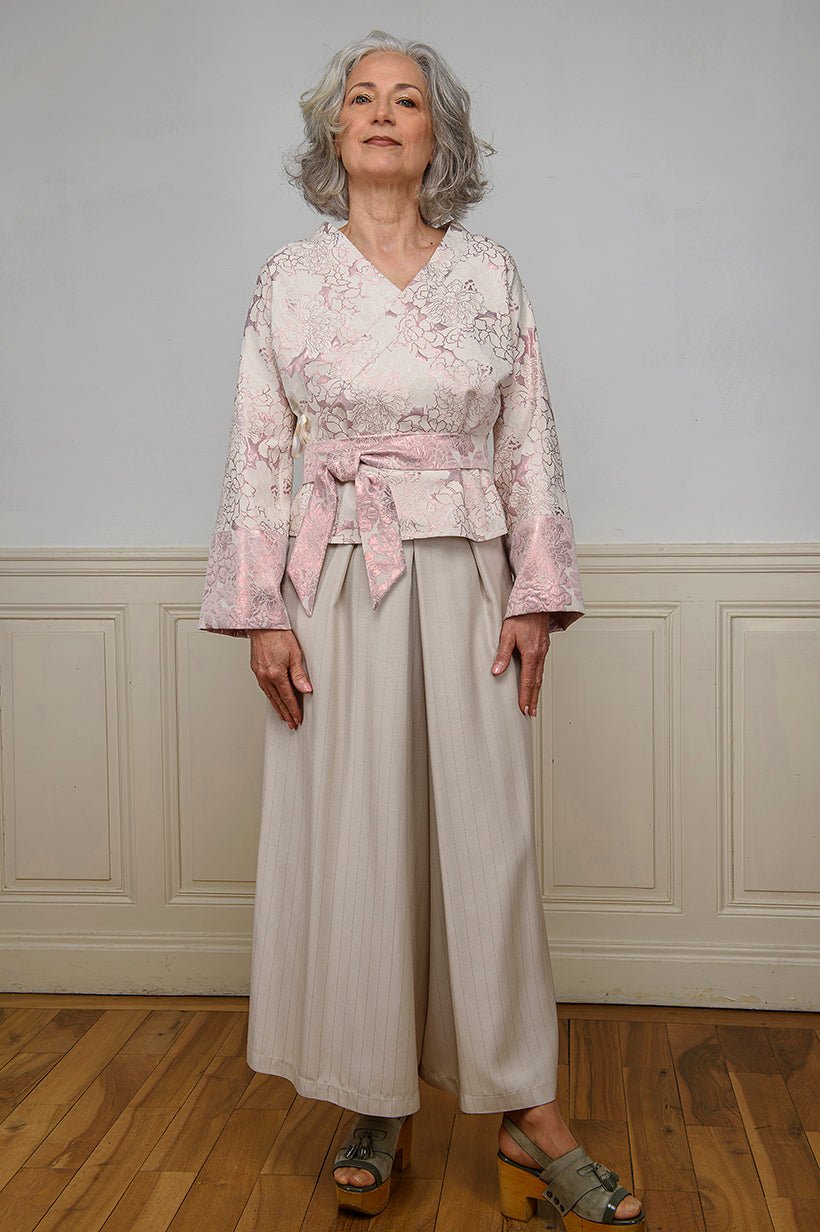 Nous travaillons en partenariat avec un tisseur régional pour créer nos jacquards exclusifs, puis coupons et cousons uniquement après commande. Pas de stock dormant : chaque kimono est pensé pour vous, avec des finitions de haute qualité, comme les coutures anglaises qui rendent nos modèles réversibles.