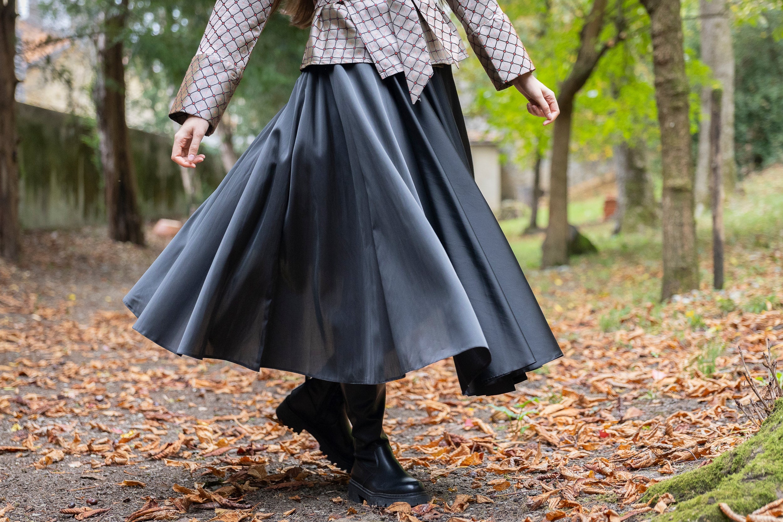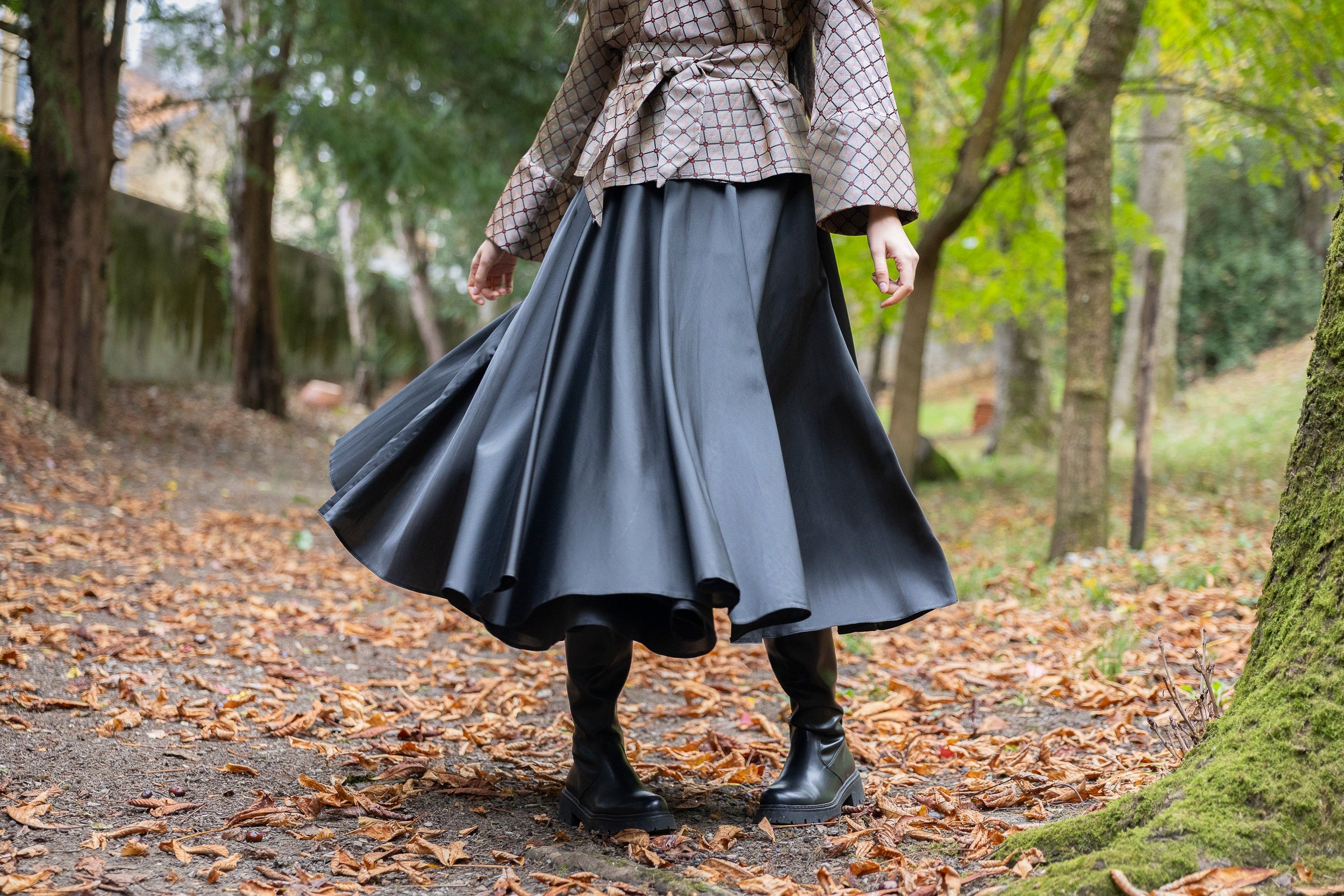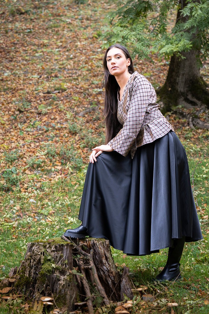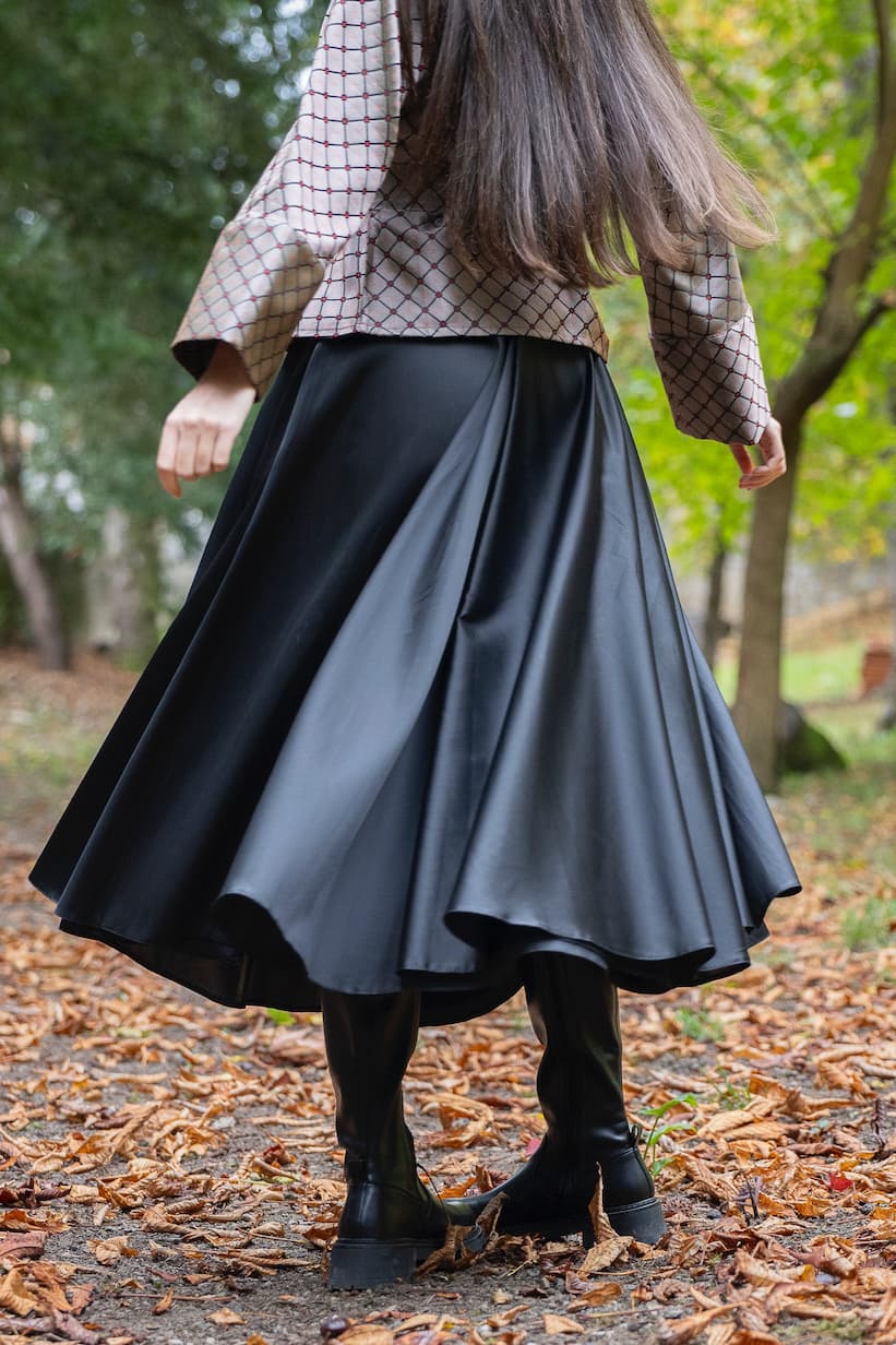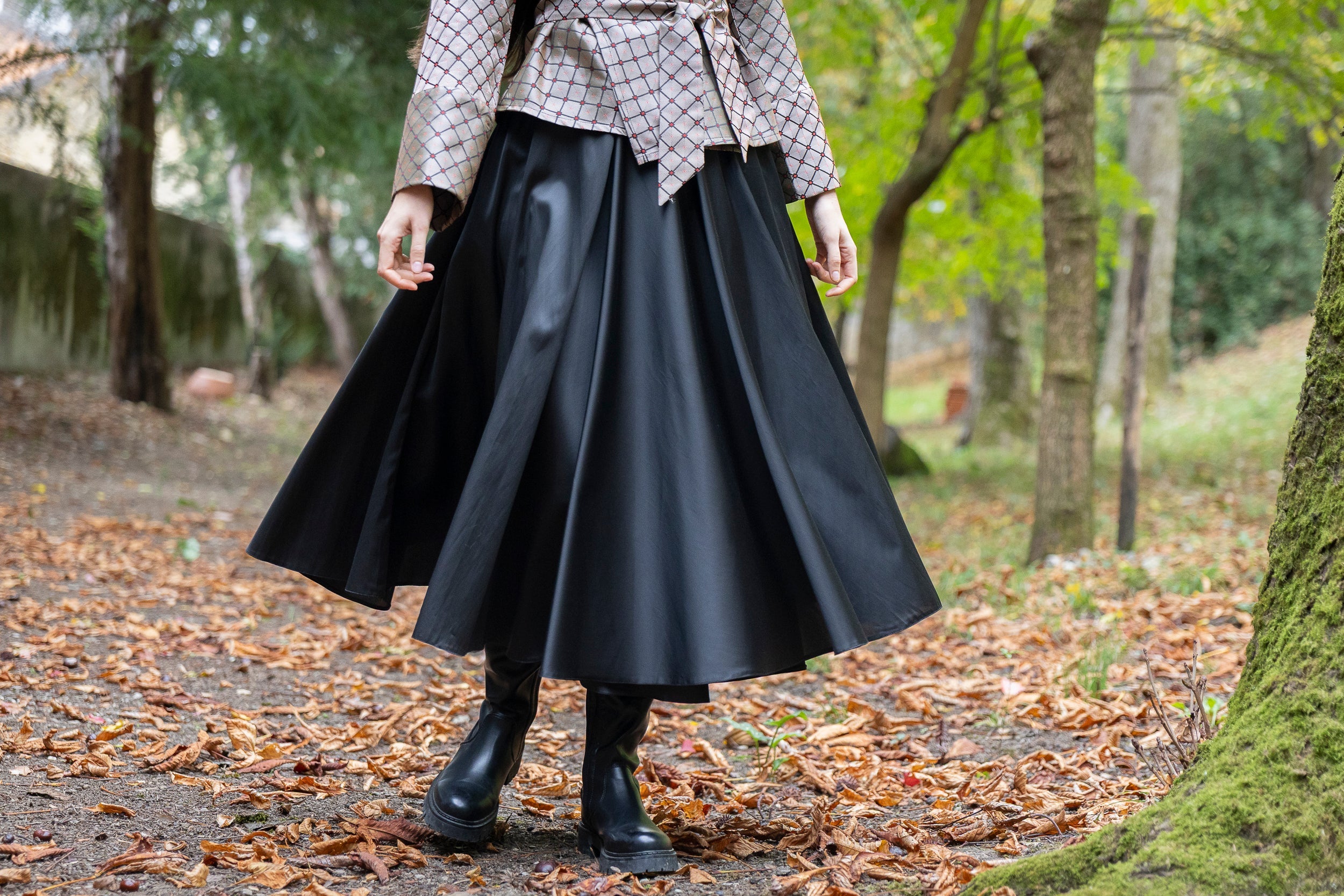 La jupe TENKO noire se distingue par sa fluidité, sa danse naturelle et son élégance féminine.