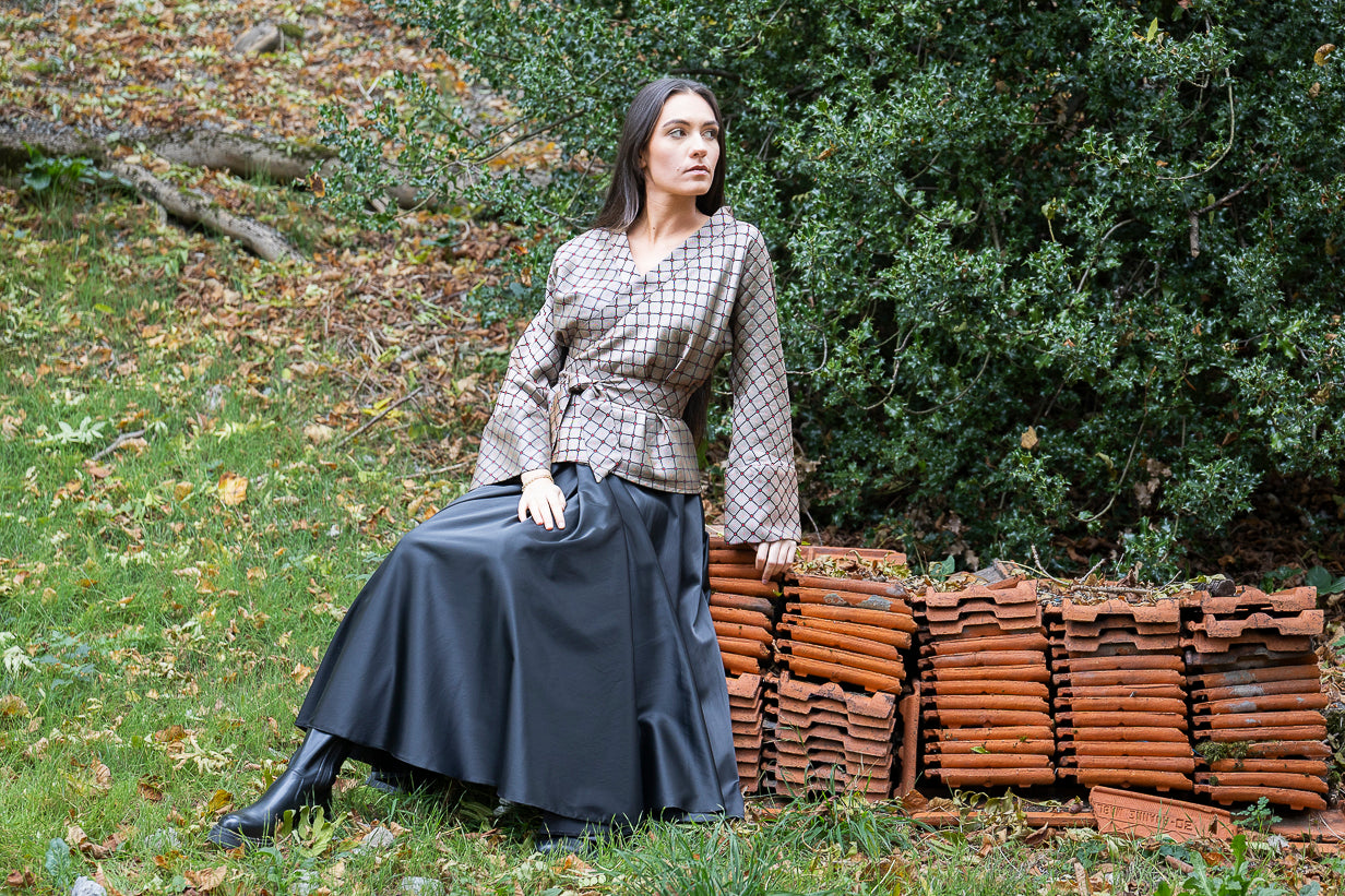 The kimono is an extension of the self, a second skin that reflects the harmony between body and mind. It embraces movements without restricting them, revealing presence rather than concealing it. Its colors and patterns become a silent expression of the being, as if the interior naturally found its echo on the exterior.