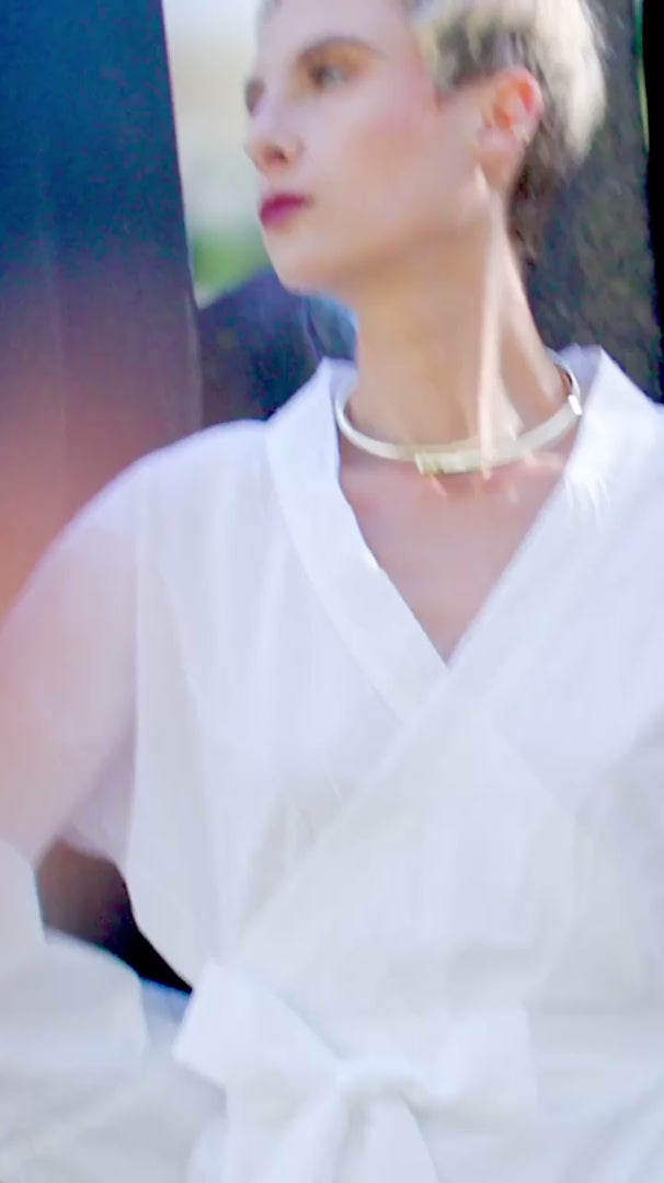 The NODO kimono worn like a blouse with more modernity and originality. With its long, slightly flared sleeves, and very generous cuffs to obtain 3/4 sleeves.
