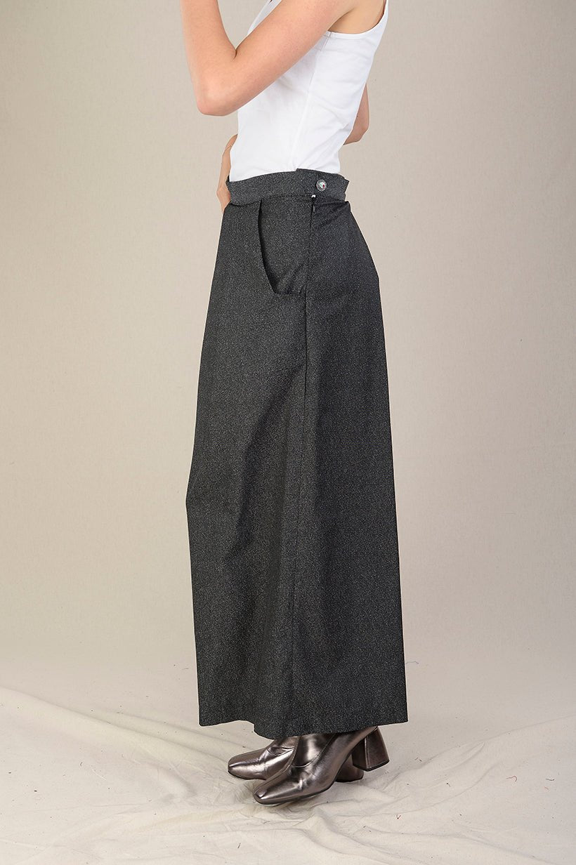Wide hakama pants with belt, pleats and pockets, cut from blue denim