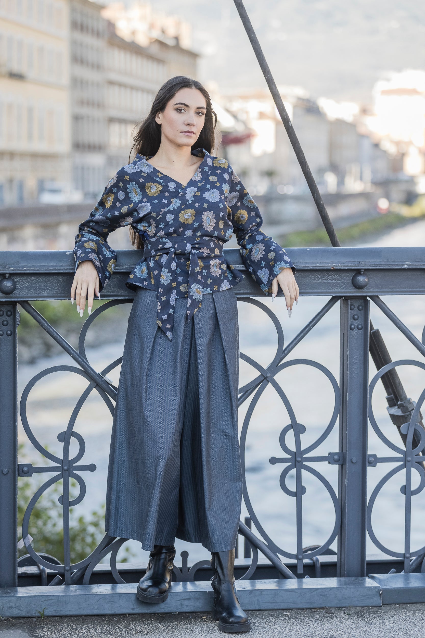 Then, once the textiles have been delivered, it is the cutting and sewing stage in our artisanal workshop in Grenoble.  All our time is dedicated to handmade work with the best level of quality and finish sought. No hasty overlock sewing, but  beautiful English seams according to the rules of the art,  which make the kimono reversible.