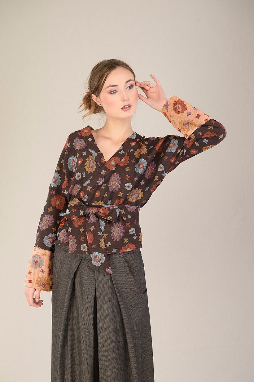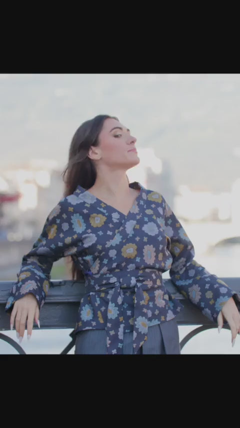 Kimono OKU  reversible for fans of refined floral patterns and  to replace a suit jacket in a more modern and original way.