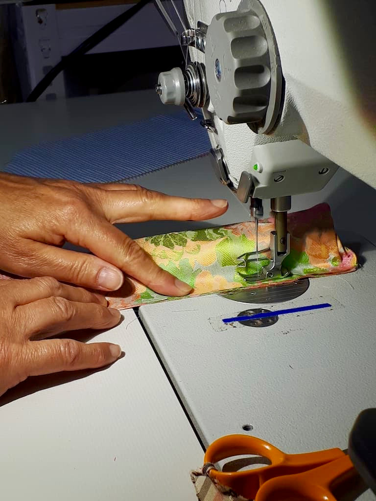 J'assure la conception des patrons, la coupe des kimonos, la réalisation des prototypes et le montage en pièces uniques. La réalisation des petites séries et des collections capsules est confiée à des couturières hors pairs de la région.Pour obtenir des finitions parfaites et quasi invisibles, j'ai recours à la technique d'assemblage dite en "coutures anglaises", très utilisée par les maisons de haute-couture. Elle consiste à retourner chaque piqure et à la repiquer.À la main, c'est propre, net, impeccable et tous les kimonos deviennent réversibles grâce à cette couture.