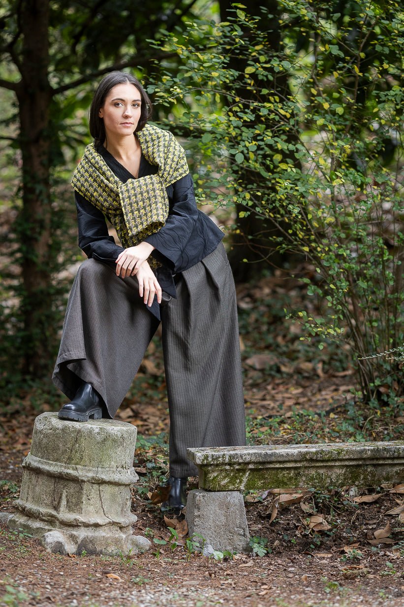 Un accessoire élégant et chaud, parfaitement assorti aux kimonos HONO et au manteau AKI marron.