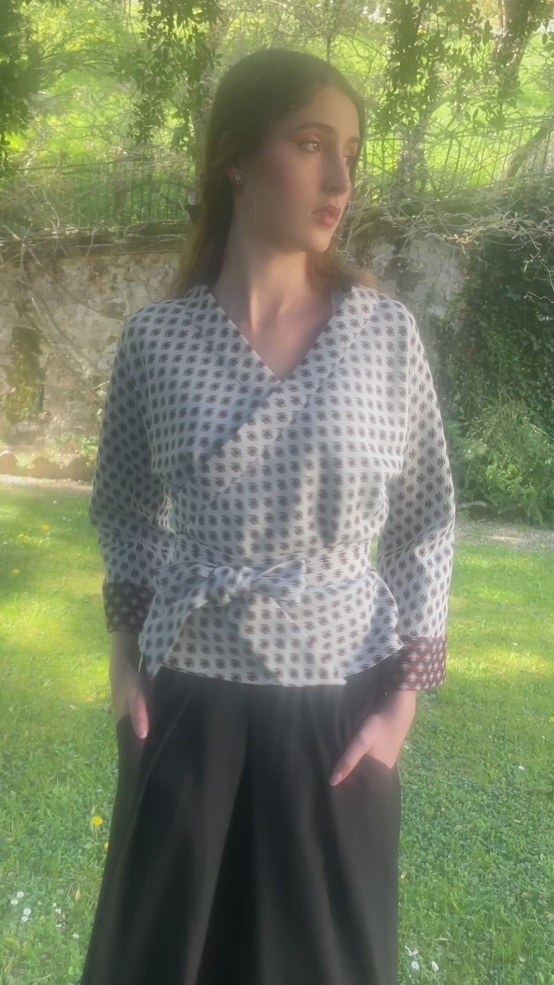 Le kimono SHAYOU réversible est coupé dans un magnifique jacquard blanc, orné d’un motif géométrique noir et rouge. Frais et délicat, avec un esprit provençal, il sera parfait pour le plein été.